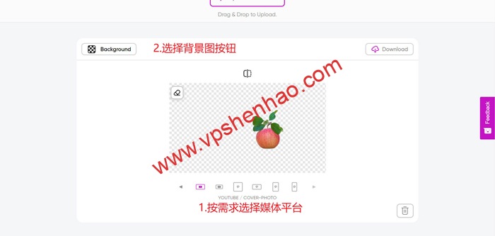 2.如果是要上传到媒体平台的图片需先选择好媒体平台规格,不是可以不选择,页面已经展示好了去完背景的图片,