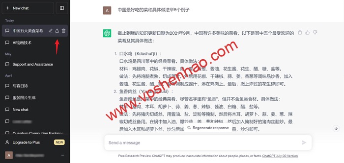 打开要分享的Chatgpt对话框,点击生成分享按钮