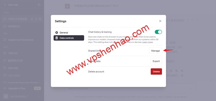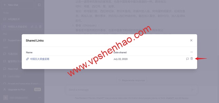 2.删除Chatgpt对话分享链接