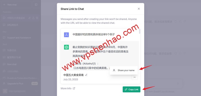 复制分享链接,访问者可在不登录Chatgpt的情况下,访问Chatgpt对话记录