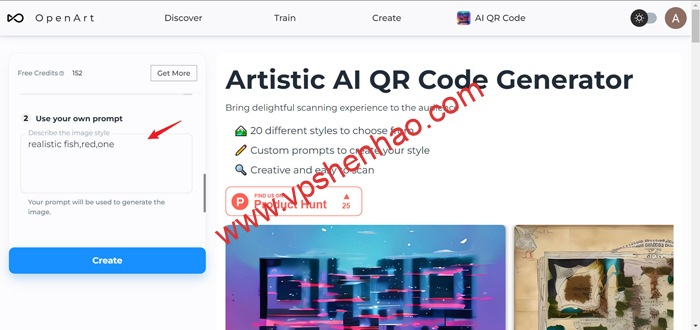 输入英文你对二维码背景的描述,点击创建
