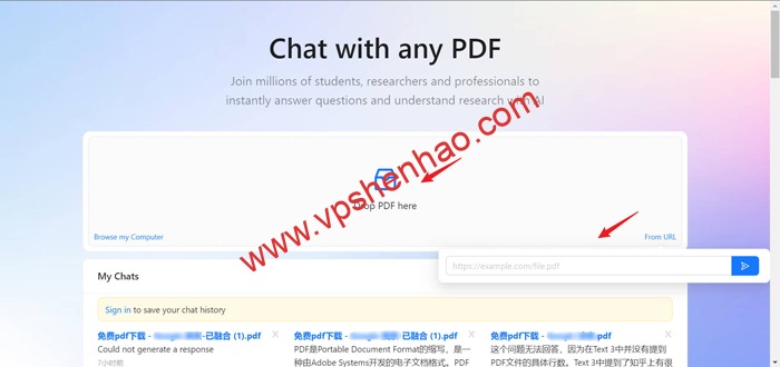 打开网址,点击上传pdf文件按钮,支持本地pdf上传,在线网址链接上传