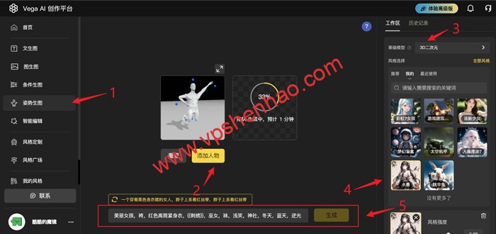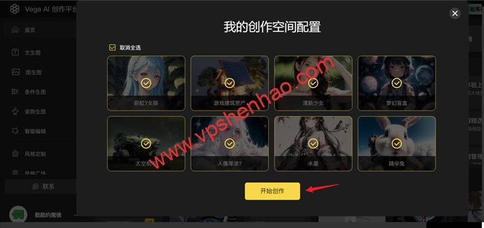 AI绘画平台带有极具国风特色的武侠侠客风格,诗词山水意境风格,可爱形象的猫咪风格,各种漫画和二次元AI风格等,极其熟悉的中文提示词让一切的AI绘画在线作画变得无比简单,支持风格叠加让AI绘画的准确性有了提升,加上AI绘画图片生成图片让这一切都刚刚好,各种条件控制从图像轮廓,人物动作,图片深度信息,锁定你想要的图,助你成功作图,如果你还不会作图,想法不够,姿势来凑,AI绘画姿势生图,极易操作的人物模型将会帮助你更加准确控制人物动作,完成多人同时出现在同一画面的复杂场景,各种功能辅助用,AI绘画效果容易被相中