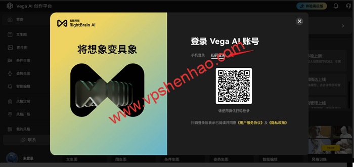 打开AI绘画平台,支持手机号登陆和微信扫码登录,小编以微信扫码登录开始今天的演示