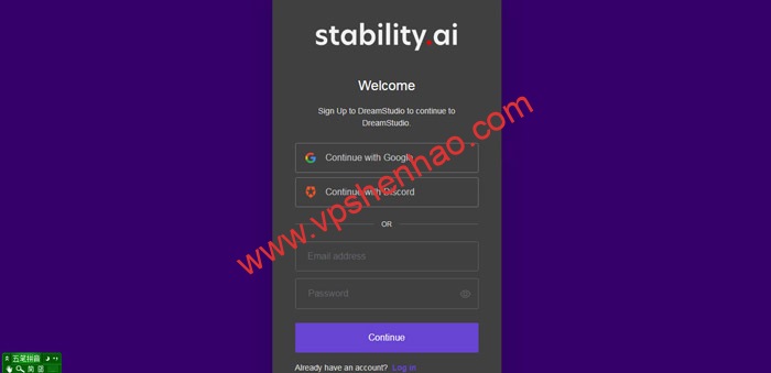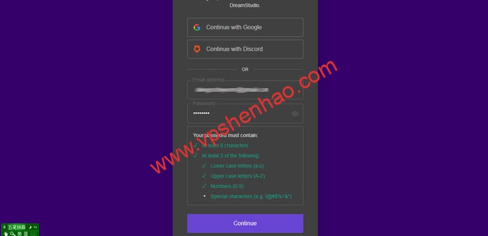 访问网址页面,填好邮箱地址和密码,点击Continue (访问网址要能上外网环境)