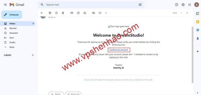 在邮箱中找到DreamStudio发来的邮件,点击确认我的账号