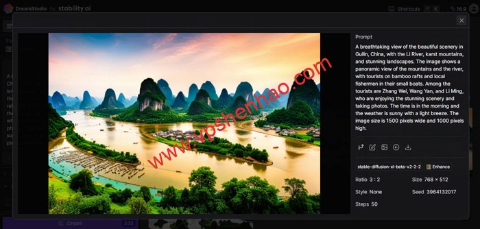 AI绘画主要是AI文本生成图像,通过输入英文图像描述,选择好尺寸就能完成图像,这款AI软件看上去做图真实感很强,操作简单,生成图像丰富多样,图像和文字契合度很高,看图上例子仿佛AI也到过桂林,AI绘画技术这里很强,是真强