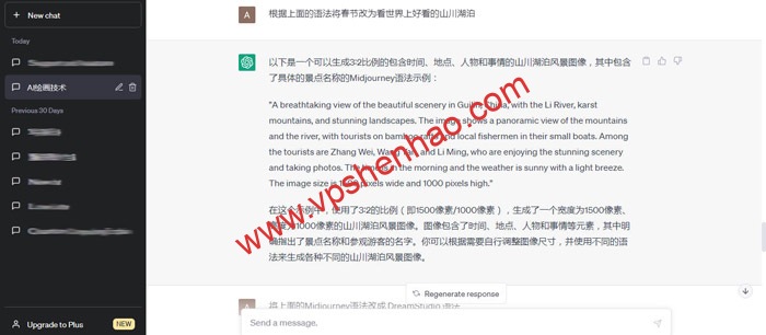 小编想画一幅绝美的山水画,于是我找到了注册好的Chatgpt,看看它对绝美山水画的看法,