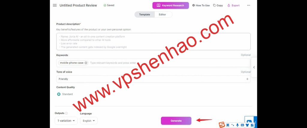 AI生成评论工具只需要输入产品的主要关键信息,选择生成语言就能实现AI产品评价的生成了,AI产品评价将会以英文形式呈现,如果你尝试想生成其他语言的AI产品评价,这款AI生成评论工具也能实现,支持大多数主流语言的评论生成,如果你对生成后的AI评论结果不是很满意,你可以随意编辑和修改评论达到生成评论的目的,AI生成评论结果非常详细的包含了AI对产品的优点,缺点,外观和用途等的描述,你可以在很短的时间里生成AI产品评论,非常实际的提升客户对产品的认识程度,提升客户对产品的喜欢程度。